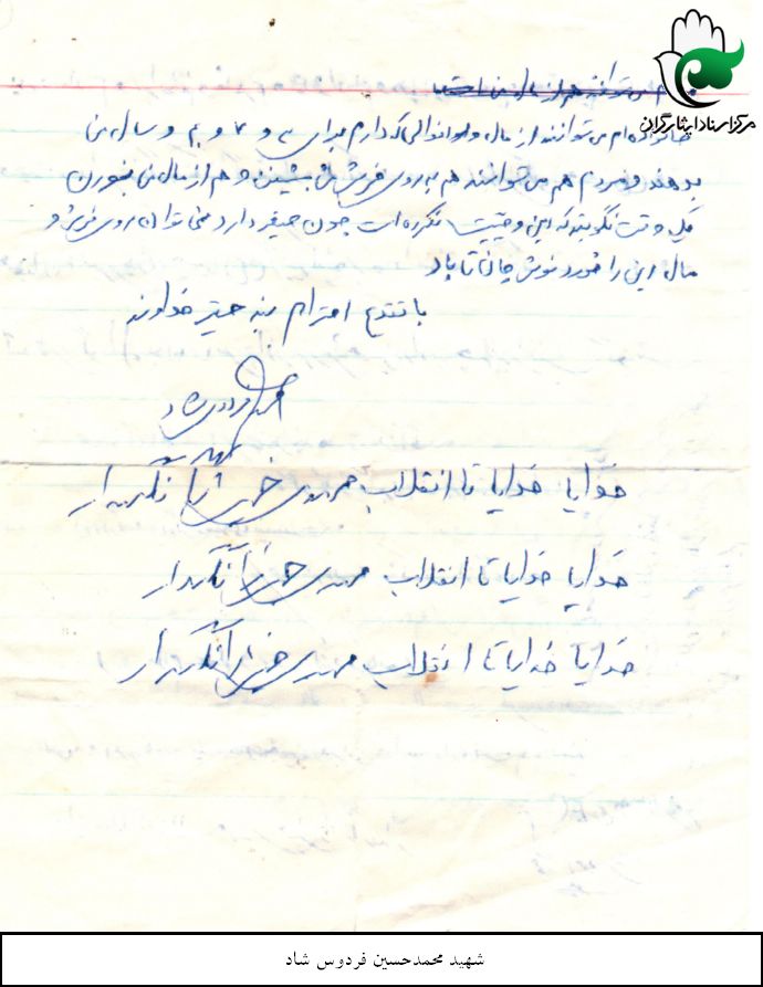 قرآن و کتاب هاي مذهبي را بخوانيد، گو. ش به فرمان مسئولين نظام باشيد. واجبات را انجام دهيد و محرمات را ترک کنيد. نماز را اول وقت بخوانيد. از نظام مقدس جمهوري اسلامي و نواميس و مرز و بوم کشور دفاع کنيد. امر به معروف و نهي از منکر کنيد. يتيم نواز و مهمان نواز باشيد.
