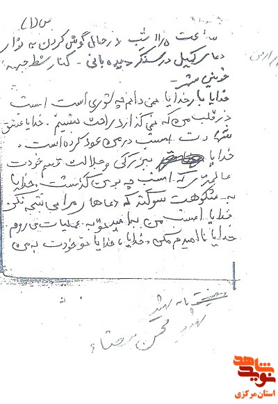 راز و نيازهاي شهيد محسن بيضاء+ دستخط شهید