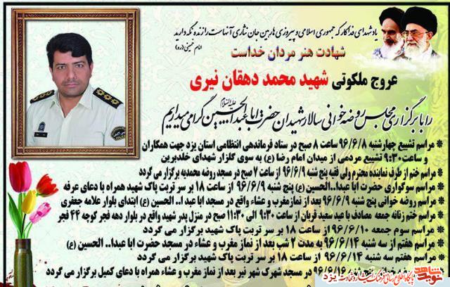 پیکر مطهر شهید محمد دهقان نیری فردا در یزد تشییع می شود