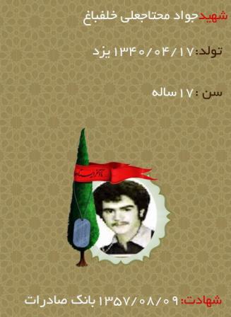 نوید شاهد یزد: شهید جواد محتاجعلی خلف باغ در 17 تير 1340 در خانواده ای مذهبی به دنیا آمد پدرش جلال كارگر بافندگي بود و مادرش ربابه نام داشت.