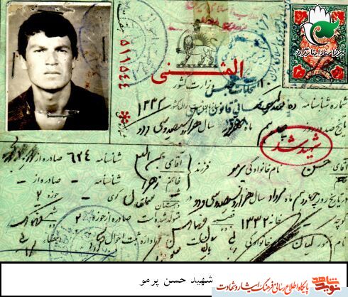 احیاء و اجرایش سر و جان خود را نثار نموده اند و آنان که با چشم گریان پا رو ی آرمان های شهیدان و احکام اسلام می گذارند نه تمنها از خون شهیدان پاسداری نکرده اند بلکه دل پاک خانواده محترمشان را به درد آورده اند و عوض اه و ناله و گریه و فریاد کردن بهتر است که راه شهیدان را ادامه دهیم که برای ادامه دادن راه شهیدان باید توفیق ان را از خدا خواست و در این راه حرکت کرد، و اما شهید حسن پرمو روستا زاده ای که در چاردهم مرداد 1332 در روستا مهمانک از توابع شهرستان بجنورد در خانواده ای که فقر مادی بر آنان مستولی بود دیده به جهان گشود . دوران کودکی را در آغوش پدر و مادر گذراند و به علت عدم توانایی مالی نتوانست به تحصیلات ابتدایی خود ادامه دهد و لذا از همان ابتداء نوجوانی روستای محروم و رنجیده مهمانک که سالها اهالی و ساکنان آن تحت سیطره خانها و عوامل مستبد رژیم منظور شاه به کارگری مشغول شد تا بتواند از دست رنج خود کمکی به تامین معاش زندگی خانواده کند از مطالب موجود در پرونده پرونده فرهنگی شهید چنین بهره می گیریم که شهید پرمو از جمله کارگرانی بود که رسول اکرم صلی الله علیه و آله بر پینه دستها ی آنان بوسه میزد و امام راحل بر بوسه زدن آنان افتخار می کرد و او سال ها با کارگری در محل زندگی زندگی بجنورد و تهران اشتغال داشت و پیروزی انقلاب که آرزوی فرد هر فرد مسلمان و ستم دیده از جور حکام وابسته به رژیم بود ار بذل هرگونه تلاش در راه پیشبرد اهداف انقلاب و به ثمر رسیدن آن کوتاهی نداشت و به سهم خود کار می کرد . و در جوش و خروش انقلاب حتی الامکان در راهپیمایی و تظاهرات مردمی شرکت می نموده پس از پیروزی انقلاب و تشکیل نهاد انقلابی جهاد سازندگی در سال 1360 به عضویت جهاد سازندگی در امد و با شروع جنگ تحمیلی برای عزیمت به مناطق جنگی و یاری رساندن رزمندگان اسلام روز شماری می کرد تا سر انجام داو طلبانه عازم جبه های حق علیه باطل گردید و مدت 6 ماه به عنوان راننده لودر بلدوزر زیر رگبار های آتش دشمن بعثی به جنگ و ستیز پرداخته و خاکریز و جان پناه برای رزمندگان اسلام می ساخت تا اینکه در تاریخ نهم بهمن ماه 1360 در عملیات تنگه چزابه بر اثر ترکش خمپاره دشمن به خیل شهیدان پیوست و او با مهارتش توانست به ارمان نهائی خود که همان پیوستن به تبار حسینیان و لبیک گویان به ندای رهبر انقلاب پیوست و چه زیبا و پر شکوه به دیدار معشوق خود پیوست و چه زیبا و پر شکوه به دیدار معشوق شتافت شهید پرمو در جریان جنگ تحمیلی تا زمان شهادت سه مرتبه داوطلابانه عازم جبهه جنگ شده بود که پس از بهبودی مجددا به مناطق جنگی برگشت و در عملیات طریق القدس و تنگه چزابه شرکت نمود.