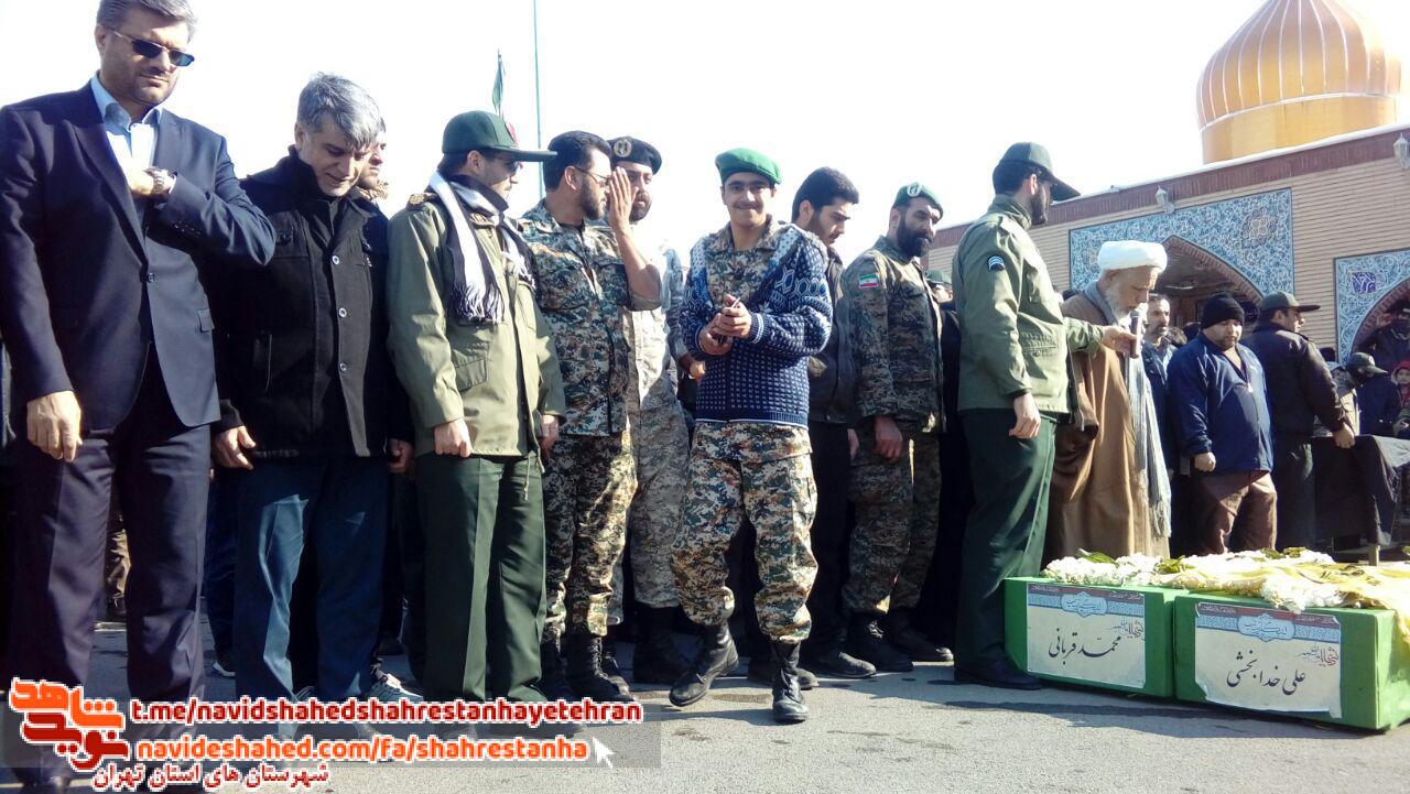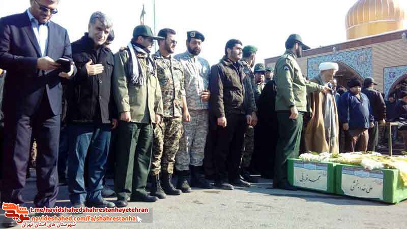 ظهر امروز با حضور مردم شهیدپرور و مسؤولان شهرستانی، هادی تمهیدی فرماندار، حجت‌الاسلام‌والمسلمین حسن لزومی امام جمعه، حجت‌الاسلام‌والمسلمین حسین اردستانی رئیس اداره تبلیغات اسلامی، حجت‌الاسلام‌والمسلمین حسینی مسؤول رسیدگی به امور مساجد، حاجی بخشدار مرکزی، شیرازی بخشدار شریف‌آباد، اکبر رحمانی رئیس بنیاد شهید و امور ایثارگران، خانواده معظم شهدا، جانبازان و ایثارگران و ملت شهیدپرور پاکدشت دو شهید مدافع حرم تشییع شدند.