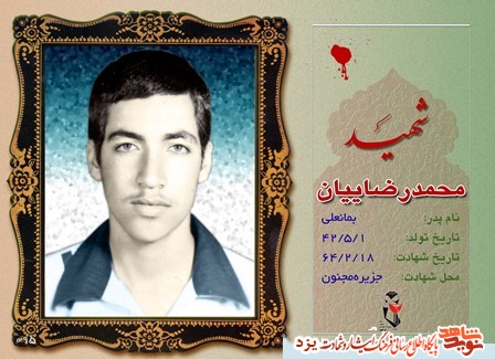 نویدشاهدیزد:شهید محمد رضاييان ابرقويي يكم مرداد 1342، در شهرستان ابركوه به دنيا آمد. پدرش بمانعلي، كشاورز بود و مادرش بمانه نام داشت. تا پايا دوره متوسطه در رشته انساني درس خواند و ديپلم گرفت. به عنوان پاسدار وظيفه در جبهه حضور يافت. هجدهم ارديبهشت 1364، با سمت معاون فرمانده دسته در جزيره مجنون عراق بر اثر اصابت تركش به كمر، شهيد شد. مزار او در روضه الشهداي زادگاهش واقع است.