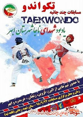 مسابقات تکواندو با گرامیداشت یاد و خاطر شهدای ناجا شهرستان ابهر جمعه مصادف با 22 آذر ماه در سالن شهید رجایی(قلعه تپه) برگزار می‌شود.