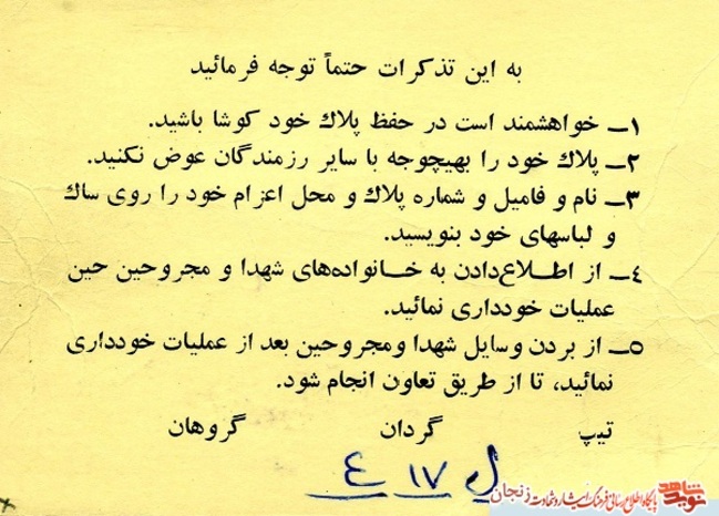 منبع: اداره امور فرهنگی، تبلیغات، هنری و اسناد بنیاد شهید و امور ایثارگران استان زنجان