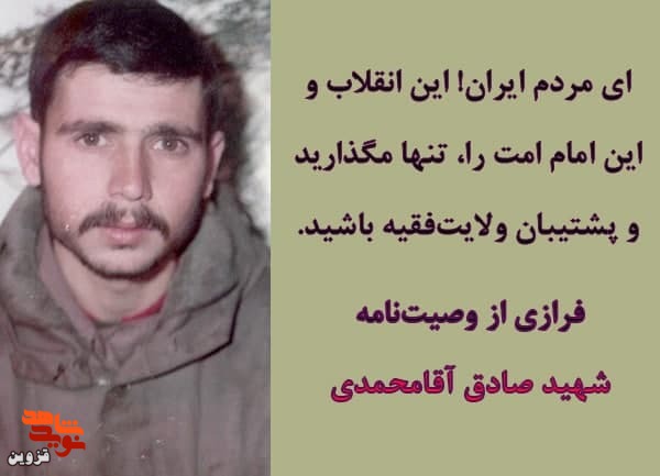 به گزارش نوید شاهد استان قزوین، شهید صادق آقامحمدی، هفتم خرداد ماه سال ۱۳۴۱، در روستای خنداب از توابع شهر تاکستان به دنیا آمد، پدرش فرهاد، کشاورز بود و مادرش سلطان نام داشت و تا دوم متوسطه درس خواند. این شهید بزرگوار از سوی بسیج در جبهه حضور یافت، سیزدهم فروردین ماه سال ۱۳۶۲، در سردشت توسط نیروهای عراقی بر اثر اصابت ترکش به ران شهید شد و مزار مطهرش در گلزار شهدای زادگاهش واقع است.