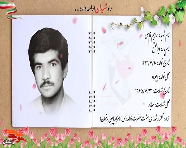 یاد و خاطر شهدای والامقام دوازدهم شهریور ماه استان زنجان شامل شهیدان ابراهیم قاسمی، غلامرضا کاظمی، مسیب قلی اصل و شهید معرفت سودی گرامی باد. در ادامه کلیپ شهدای روزانه استان زنجان را مشاهده کنید.