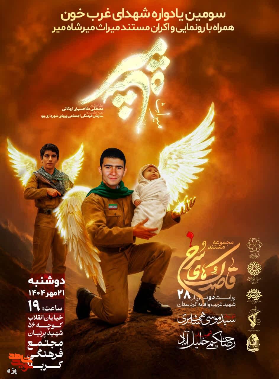 به گزارش نوید شاهد یزد، مراسم سومین یادواره شهدای«غرب خون» گرامیداشت چهل و دومین سالروز شهادت 28 شهید غریب یزدی در جبهه غرب همراه با رونمایی و اکران مستند «میراث شاه میر» روایتی از زندگی شهیدان سیدموسی شاهمیری و رضا حکیمی دوشنبه 21 مهرماه 1404 ساعت: 19 در مجتمع فرهنگی کربلا واقع در یزد، خیابان انقلاب، کوچه شهید پرنیان برگزار می شود.