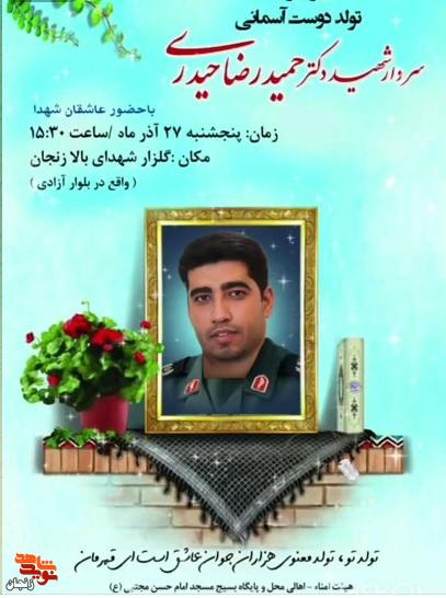 ویژهبرنامه سالروز تولد سردار شهید «حمیدرضا حیدری» در زنجان برگزار میشود