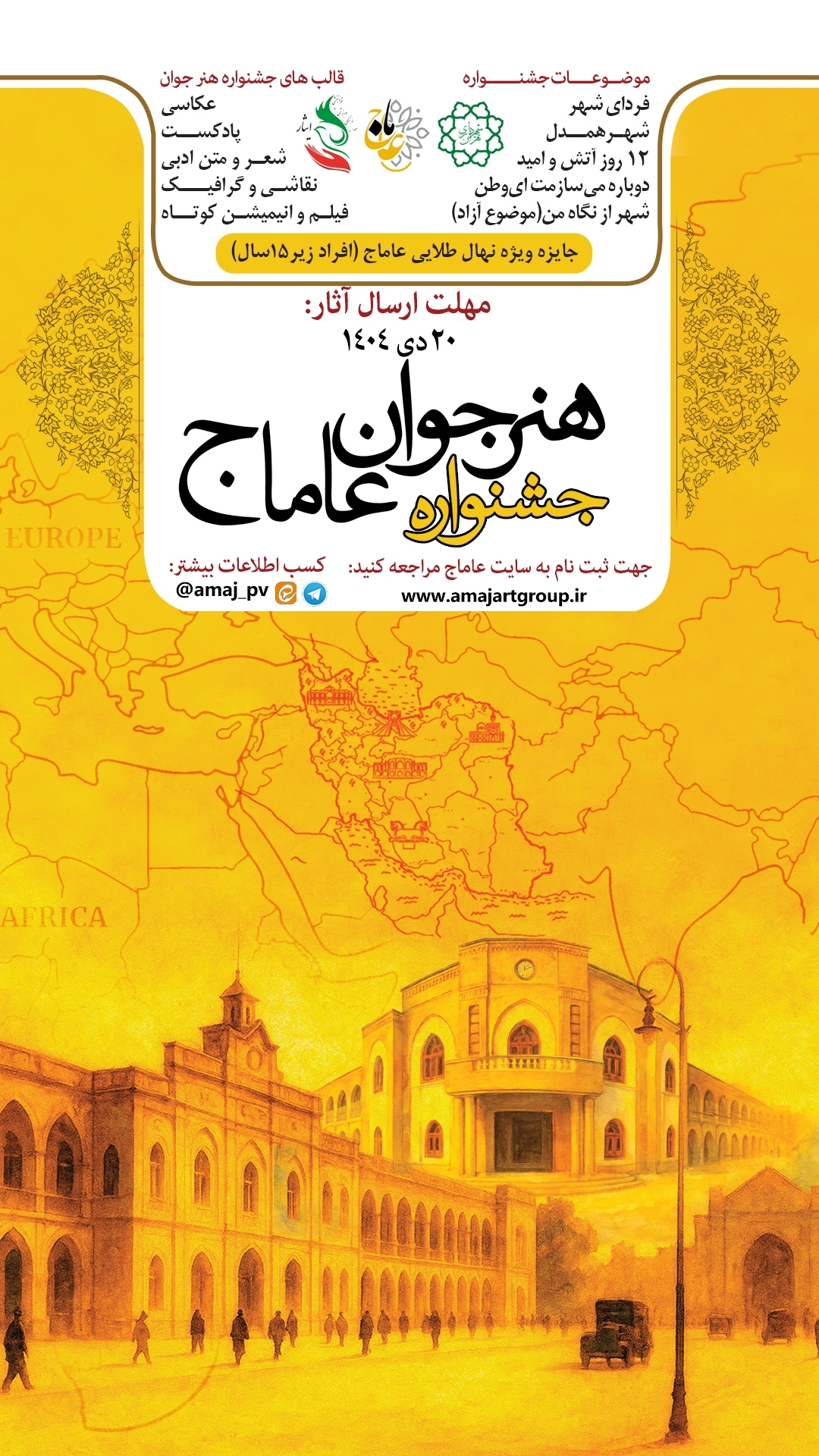 جایزه ویژه افراد زیر ۱۵سال؛ نهال طلایی عاماج و مهلت ارسال آثار: ۲۰دی۱۴۰۴ است.