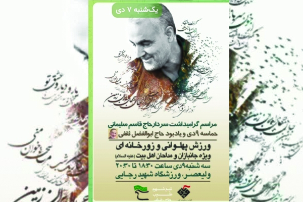 مراسم گرامیداشت شهید سردار «حاج قاسم سلیمانی» و حماسه 9 دی با حضور مردم شهیدپرور برگزار میشود.
