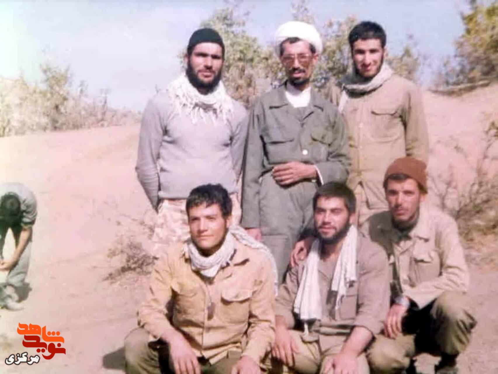 ایستاده از راست، زندهیاد مرحوم قاسم اوجاری، بیسیمچی و مرد ارتباط؛ کسی که صداها را از دل آتش عبور میداد. کنارش زندهیاد مرحوم حاجآقا ایرانی، فرماندهای که آرامش در نگاهش موج میزد؛ مردی که فرماندهیاش بیشتر شبیه پدری بود تا دستور. و کنار او، شهید احد علیپور؛ باصفا، باوفا و محبوب دلها، مسئول تدارکات گردان؛ کسی که همیشه قبل از همه میرسید و آخر از همه میرفت.