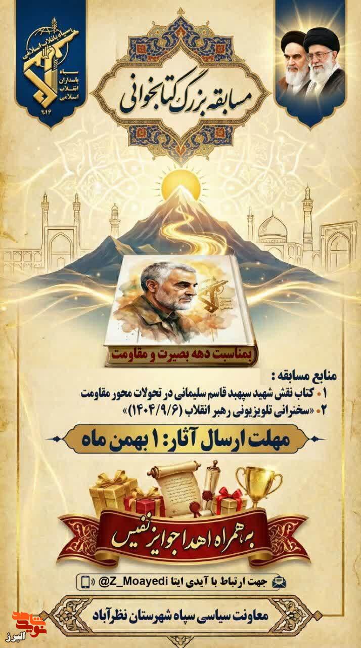 مسابقه بزرگ کتابخوانی به مناسبت دهه بصیرت و مقاومت در نظرآباد آغاز شد