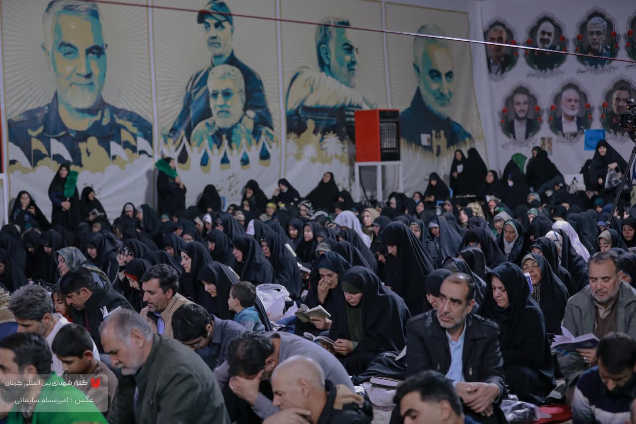 نجوای دعای کمیل زائران گلزار شهدای کرمان در آستانه ششمین سالگرد سردار دلها