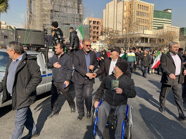 به گزارش نوید شاهد، دکتر یعقوب سلیمانی معاون فرهنگی و آموزشی بنیاد شهید و امور ایثارگران بعد ازظهر امروز دوشنبه 22 دی 1404 همراه با گروه های جامعه معزز ایثارگری در اجتماع عظیم مردم تهران علیه عناصر آشوبگر و اغتشاشگران وابسته به آمریکا و رژیم صهیونیستی و اعلام انزجار و برائت از برهم زنندگان نظم و آسایش عمومی و توهینکنندگان به مقدسات و ارزشهای مردم مؤمن و انقلابی ایران اسلامی حضور یافت.