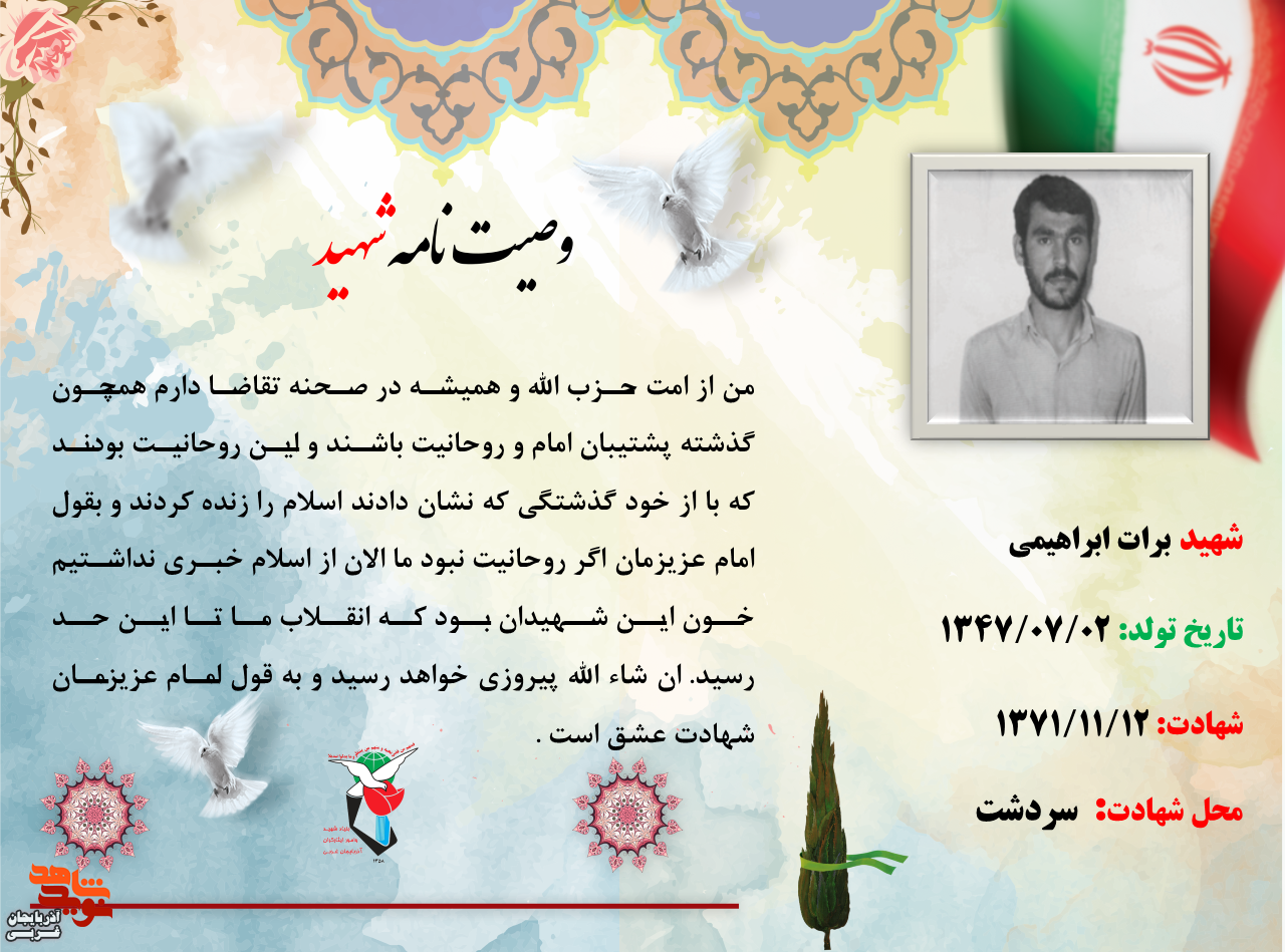 عکسنوشت و گزیده وصیتنامه شهید «برات ابراهیمی»
