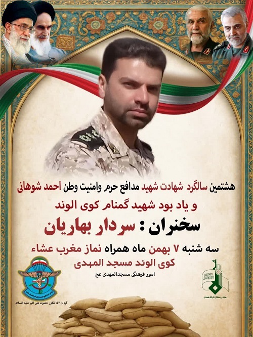 یادواره شهید مدافع حرم «احمد شوهانی» برگزار میشود.