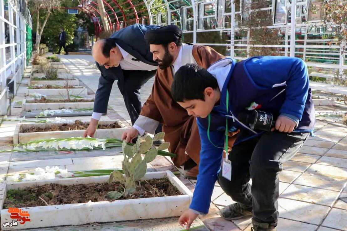 قبور مطهر شهدای شیراز در آغاز دهه فجر عطرافشانی و گلباران شد