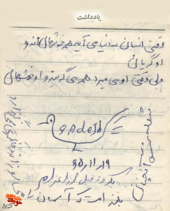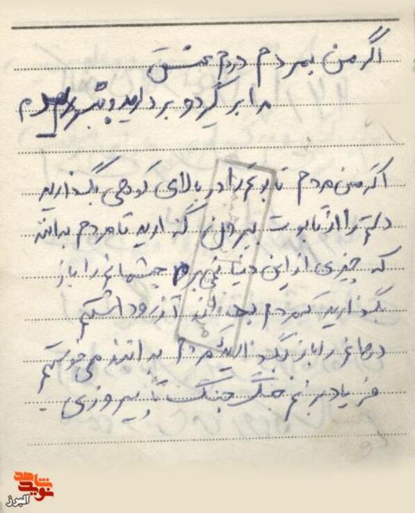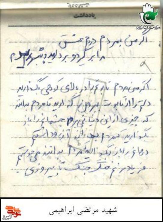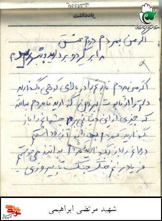 این صفحات، دفترچه‌ای است پر از خط‌خوردگی، بیت‌های ناتمام و نامه‌هایی که هرگز فرستاده نشدند. متعلق به مرتضی ابراهیمی، دانش‌آموز بسیجی ۱۷ ساله‌ای که در عملیات کربلای پنج مفقود شد. آنچه می‌خوانید روایت رسمی «شهادت» نیست؛ روایت «تنهایی» است، روایت «دلتنگی» است، روایت نوجوانی است که هنوز بوی خاک خانه را از یاد نبرده، اما اسلحه به دست گرفته است.