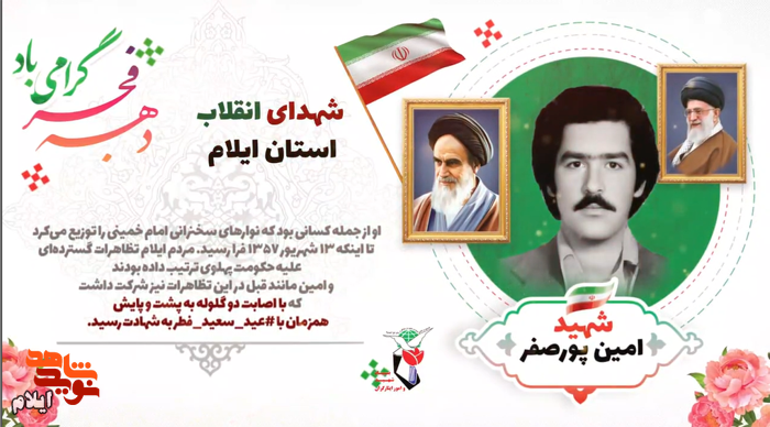 شهید امین پورصفر، کارمند جوان و متعهد اداره دارایی ایلام، از فعالان توزیع نوار‌های سخنرانی امام خمینی و شرکت‌کنندگان ثابت تظاهرات مردمی بود. او در ۱۳ شهریور ۱۳۵۷ در جریان راهپیمایی علیه رژیم پهلوی با اصابت گلوله به شهادت رسید و پیکرش در جوار امام‌زاده علی‌صالح (ع) آرام گرفت.