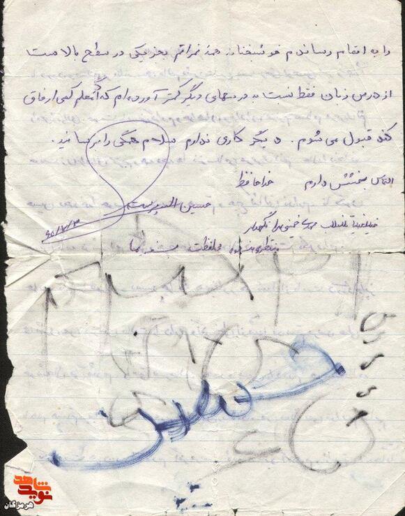 نامه دستنوشته شهید حسین اللهپرست: