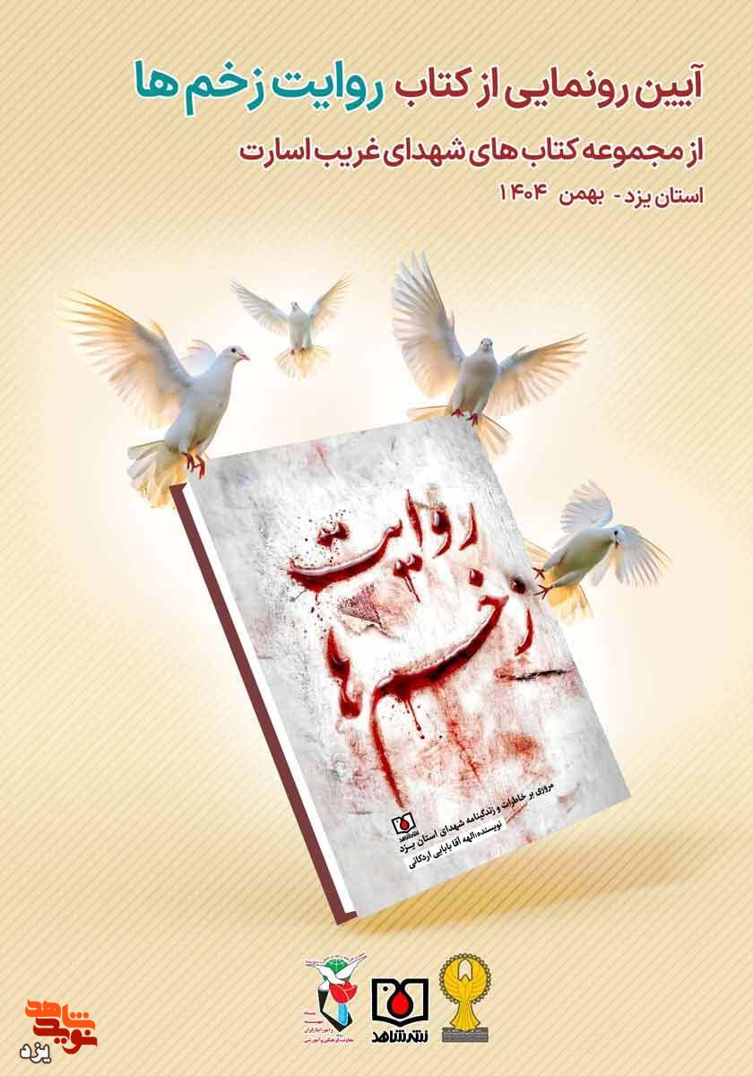 به گزارش نوید شاهد یزد، ههمزمان با ایام‌الله دهه مبارک فجر، مراسم رونمایی از کتاب «روایت زخم‌ها» که مروری بر خاطرات و زندگینامه شهدای غریب اسارت استان یزد است، روز دوشنبه ۲۰ بهمن‌ماه ۱۴۰۴ در دفتر آیت‌الله ناصری، نماینده ولی‌فقیه و امام جمعه این استان برگزار می‌شود.