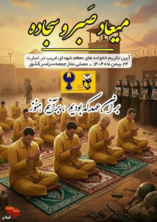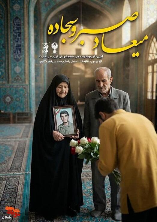 مجموعه پوسترهای «رویداد ملی میعاد صبر و سجاده» همزمان با اعلام برگزاری آیین تکریم از خانواده‌های معظم شهدای غریب در اسارت در سراسر کشور منتشر شد؛ آثاری که روایت‌گر صبر، سجاده و غربت‌اند و مقدمه‌ای برای برگزاری مراسمی سراسری در پاسداشت مقام شهدا و خانواده‌هایشان به شمار می‌روند.
