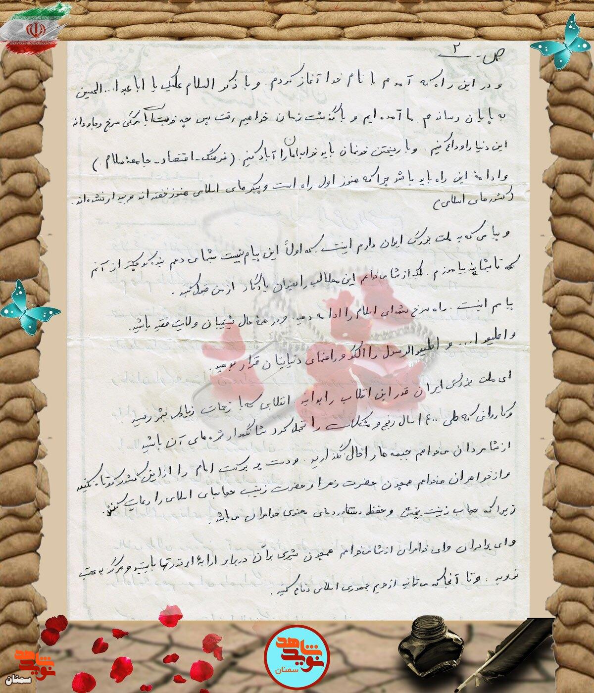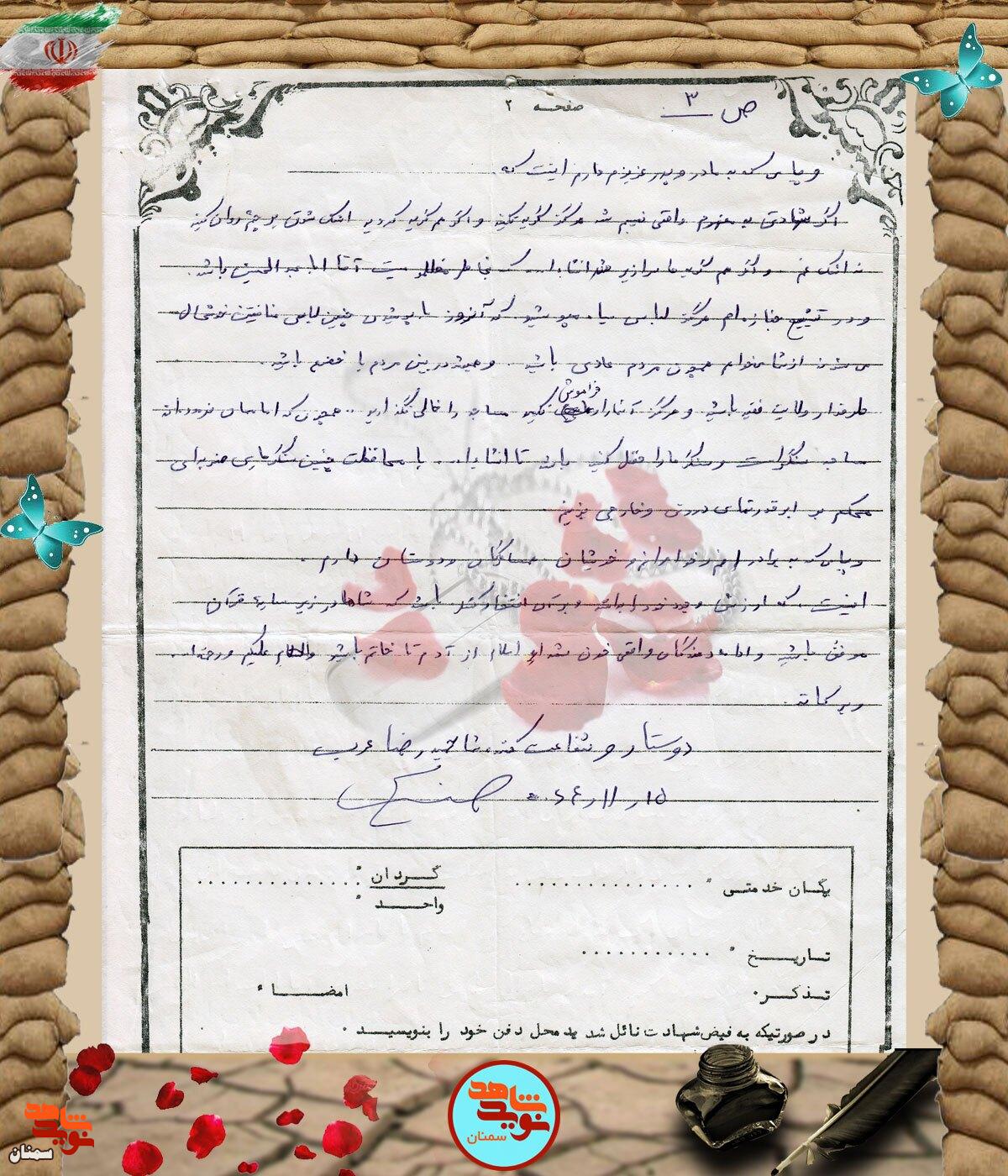 دست‌نوشته شهید حمیدرضا عرب
