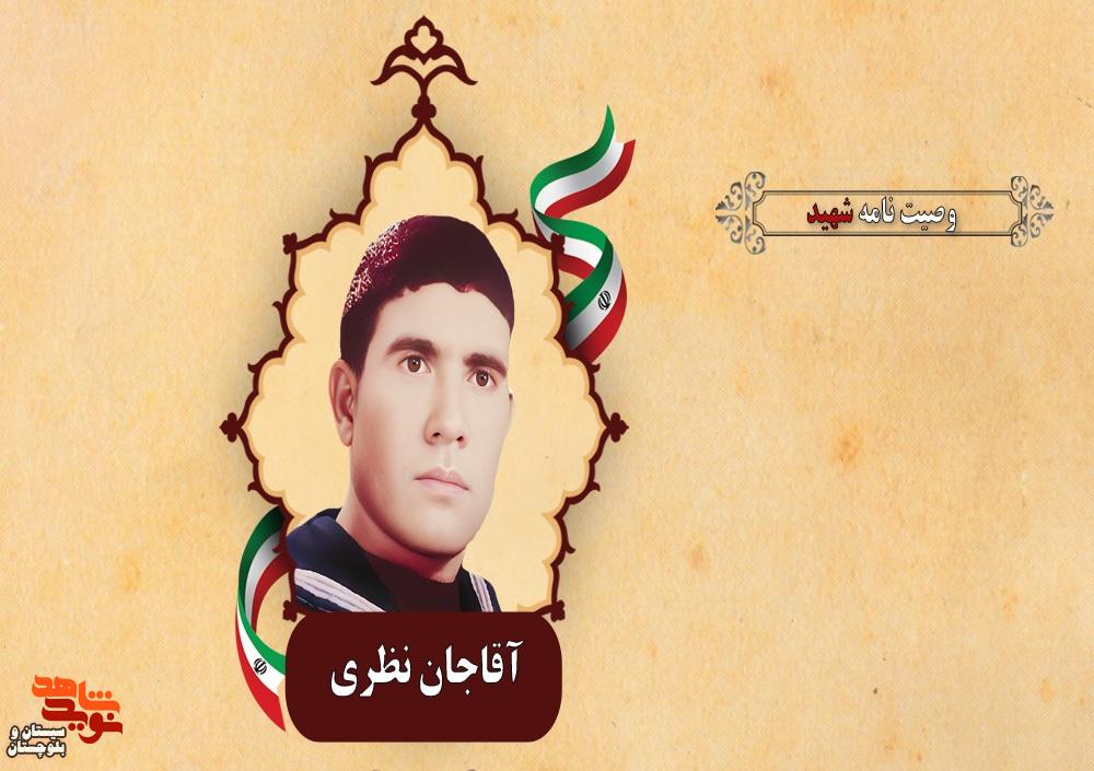 من استوار دوم آقاجان نظری فرزند غلام که به دستور شرعی و الهی رهبر کبیر انقلاب در تاریخ سوم خرداد 1364، برای دفاع از کشور و ملت مسلمان ایران و برای یاری دین مبین اسلام عازم جبهه های حق علیه باطل می باشم تا شاید بتوانم کلید نجات مظلومان از دست ظالمان تاریخ گردم.