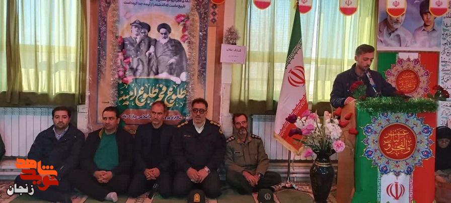 آیین نواخته شدن زنگ انقلاب همزمان با نخستین روز از دهه مبارک فجر، با حضور حجتالاسلام والمسلمین حسینینسب امام جمعه شهرستان سلطانیه، دکتر انصاری فرماندار شهرستان و جمعی از مسئولان اداری، کادر آموزشی و دانشآموزان، در دبیرستان پسرانه علامه حلی برگزار شد. در این مراسم، ضمن گرامیداشت یاد و خاطره امام راحل (ره) و شهدای والامقام انقلاب اسلامی، بر ضرورت پاسداشت ارزشهای انقلاب، تبیین دستاوردهای نظام اسلامی و نقش مؤثر نوجوانان و جوانان در مسیر پیشرفت و تعالی کشور تأکید شد. تصاویر مربوطه را در ادامه مشاهده کنید.