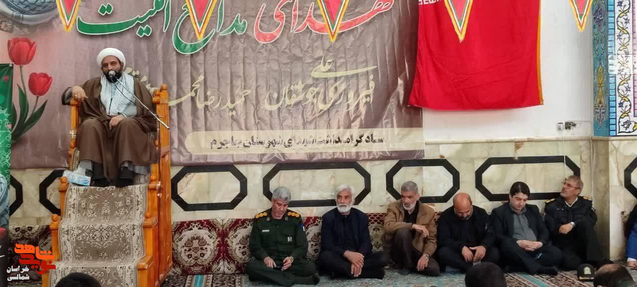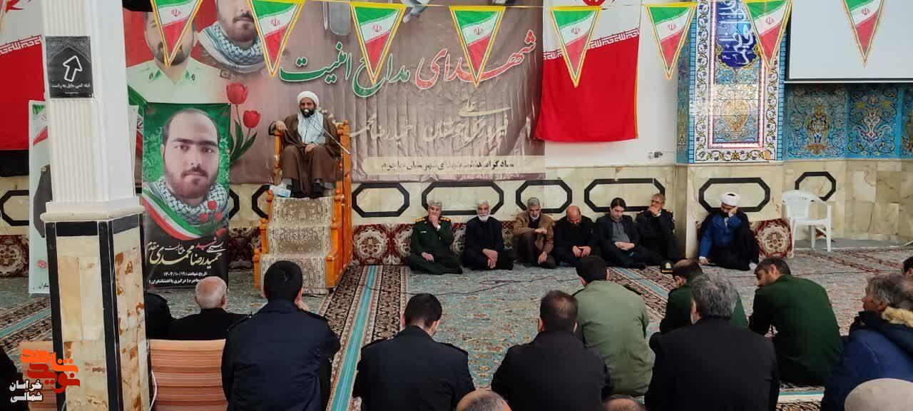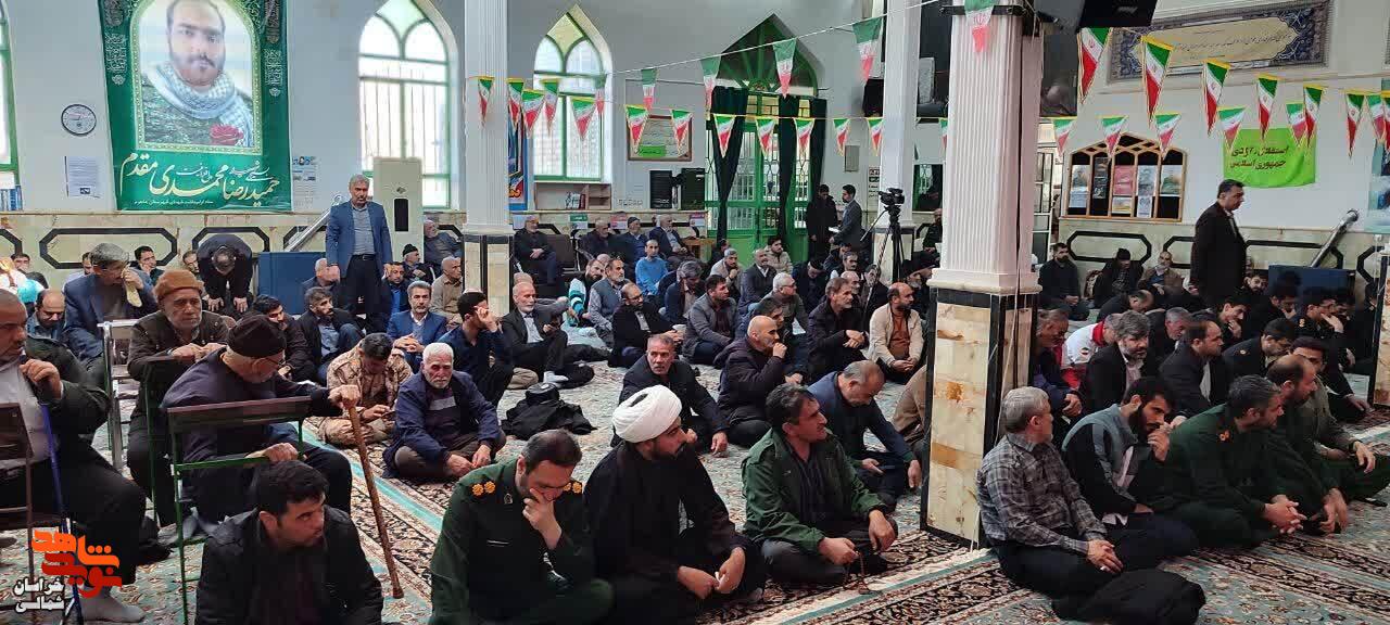 به گزارش نوید شاهد خراسان شمالی، بیست و هفتم بهمن ماه۱۴۰۴، مراسم گرامیداشت چهلمین روز شهادت شهدای والامقام امنیت شهید «علی فیروزی جوشقانی» و شهید «حمیدرضا محمدی مقدم» با حضور پرشور مردم مومن و انقلابی و ولایت مدار در محل مسجد صاحب الزمان «عج» شهرستان جاجرم برگزار شد.