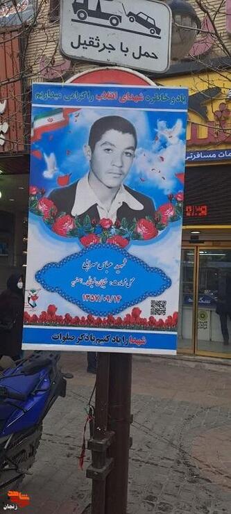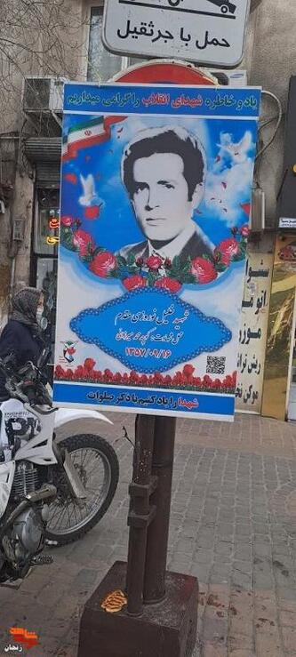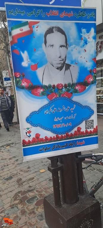 برپایی نمایشگاه تصاویر شهدای انقلاب در مسیر راهپیمایی ۲۲ بهمن زنجان