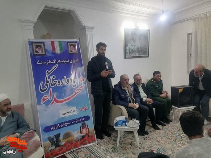 همزمان با سالروز پیروزی شکوهمند انقلاب اسلامی و در آستانه ۲۲ بهمن، یادواره خانگی شهید والامقام بهرام بختیاری از شهدای عملیات غرورآفرین والفجر ۸ برگزار شد. این مراسم با حضور دکتر علیمردانی نماینده مردم شهرستانهای ابهر، خرمدره و سلطانیه در مجلس شورای اسلامی و همکلاسی شهید، ابراهیمی مدیر آموزش و پرورش ابهر، جمعی از بسیجیان، امام جماعت و نمازگزاران مسجد امام حسن(ع) برگزار شد.