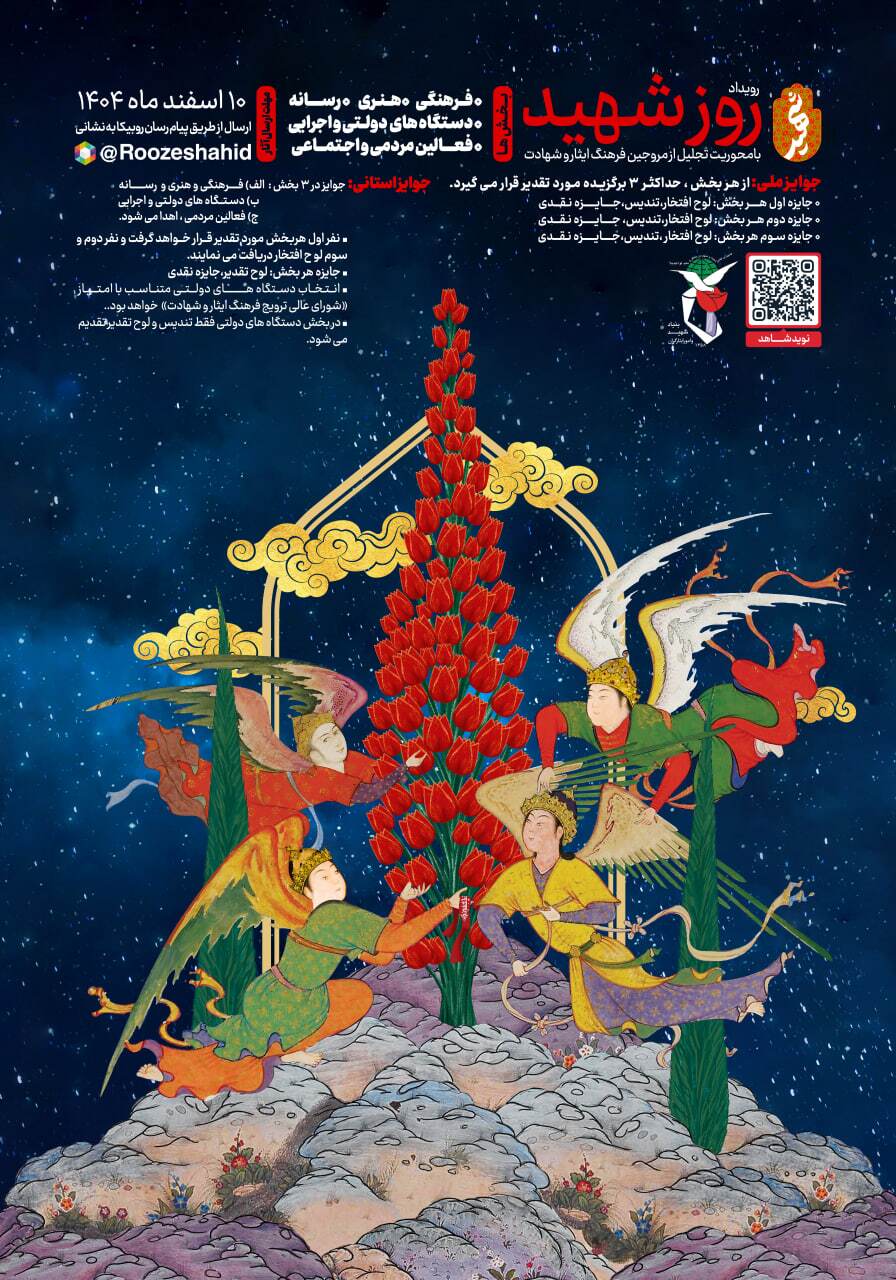 پوستر مراسم ملی و سراسری بزرگداشت روز شهید، با محوریت تجلیل از مروجین فرهنگ ایثار و شهادت، همزمان با ۲۲ اسفند ۱۴۰۴ در منتشر شد.