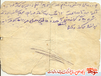برای آقا رضا سلام می رسانم برای آقا موسی و آقا عیسی سلام می رسانم برای تمامی دوستان و فامیل ها سلام می رسانم برای حلیمه و کلثوم سلام می رسانم من احتمالا برای 10 الی 20 روز دیگر به مرخصی خواهم آمد. با شیخ اسماعیل تماس گرفتم و شب در آنجا بودیم و صبح پیش محمدصادقی رفتیم که حالش خوب بود.