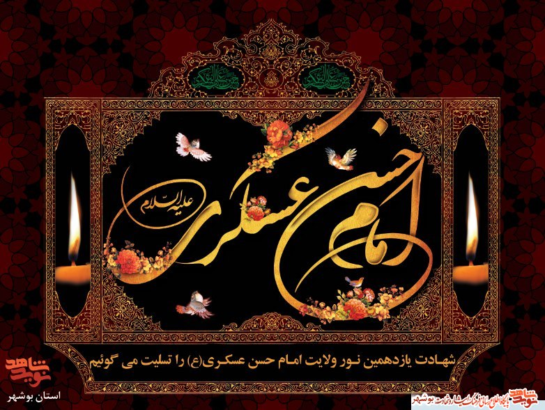 شهادت مظلومانه يازدهمين پيشواي شيعيان جهان ؛ حضرت امام حسن عسكری عليه السلام را به پيشگاه فرزند غائبشان ؛ امام عصر؛حضرت مهدي صاحب الزمان عجل الله تعالي ظهوره و شيعيان آن امام همام تسلیت عرض مي كنيم