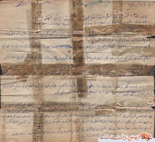 بیایید با هم دست پیمان و وحدت کامل بدهید و دشمن را نابود کنید و ایران را پیروز و یک سرزمین اسلامی بسازید خرابیها را آباد کنید و برای اسلام فداکاری کنید همانطوریکه حر، خود را فدای امام حسین (ع) کرد.دوستان مرا حلال کنید.