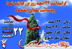سه شنبه 2 2**اسفند** ماه ساعت 9 صبح در گلزار شهدا شهر یاسوج و همزمان