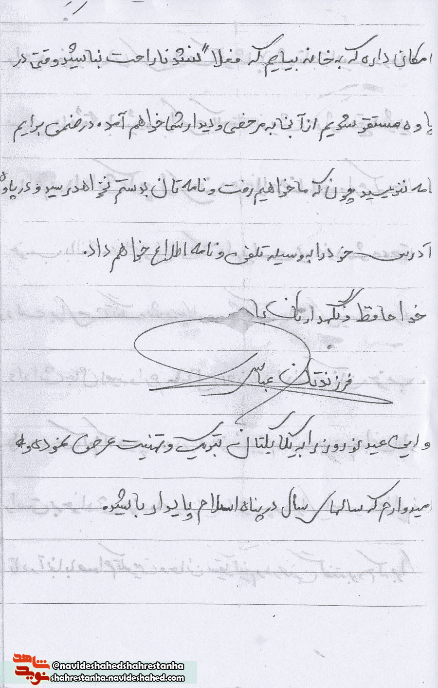 خداحافظ و نگهدارتان/ فرزندتان عباس/ امضاء
