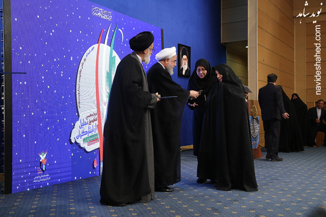 حجت الاسلام والمسلمین حسن روحانی رئیس جمهوری از 7 برگزیده دوازدهمین کنگره ملی تجلیل از ایثارگران «نکوداشت شهدای قرآنی» تجلیل کرد.