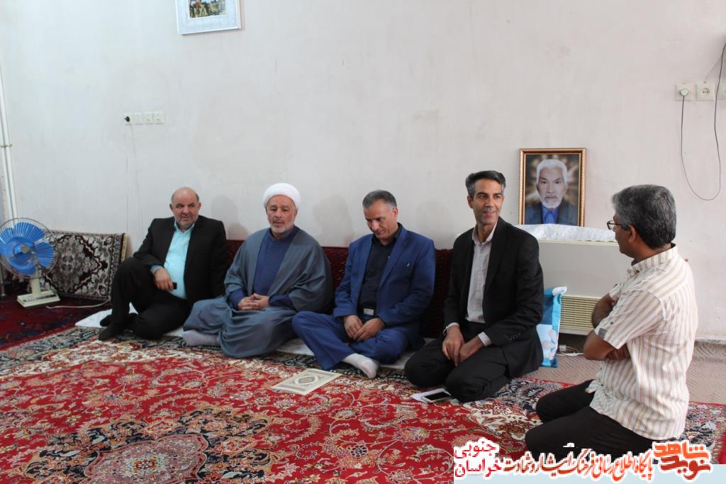 مدیر کل بنیاد شهید و امور ایثارگران خراسان جنوبی به همراه معاون اداری مالی و معاون فرهنگی و امور اجتماعی با خانواده های معظم شاهد و ایثارگر شهرستان بشرویه دیدار کرد. گزارش تصویری نوید شاهد خراسان جنوبی از این مراسم را ببینید.