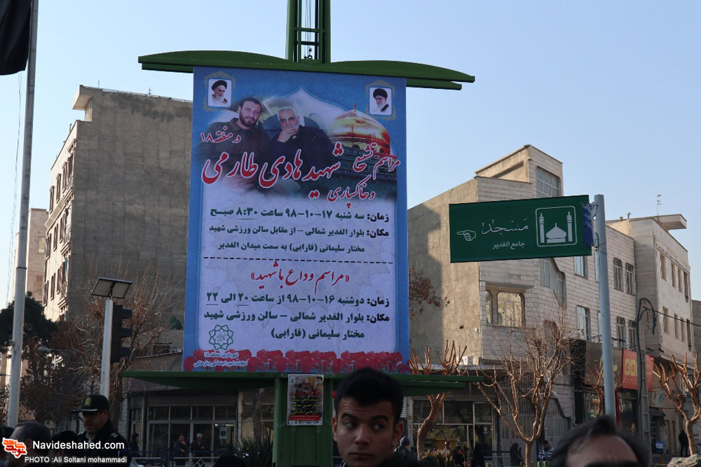 مراسم تشییع و خاکسپاری پیکر شهید هادی طارمی از اعضای تیم حفاظت سردار سپهبد شهید حاج قاسم سلیمانی، جنب قبر مطهر برادر شهید خود «محمدجواد طارمی» در قطعه ۵۰ گلزار شهدای بهشت زهرا (س) برگزارشد.