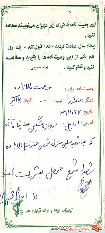 تصاویر سردار شهید غلامعباس گلی فرمانده ستاد ناحیه مالک اشتر سپاه بابل و فرمانده گروهان از گردان صاحب الزمان (عج)