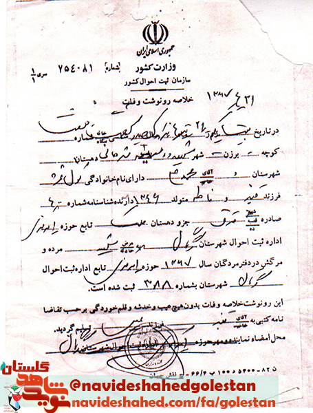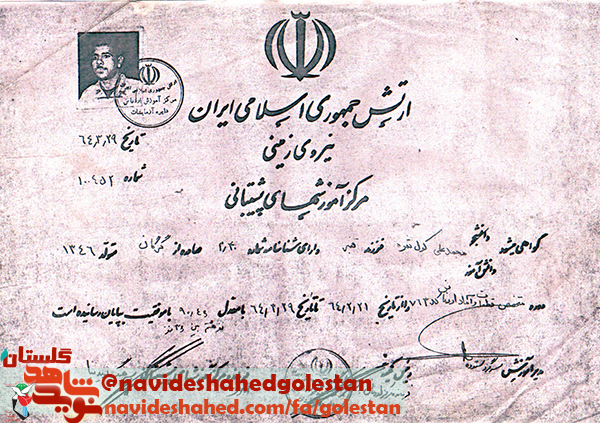 نوید شاهد _ نوید شاهد گلستان به مناسبت فرا رسیدن سالروز شهادت شهید کول ثمره، اقدام به انتشار اسنادی از این شهید والا مقام را نموده است که در ادامه می بینید.