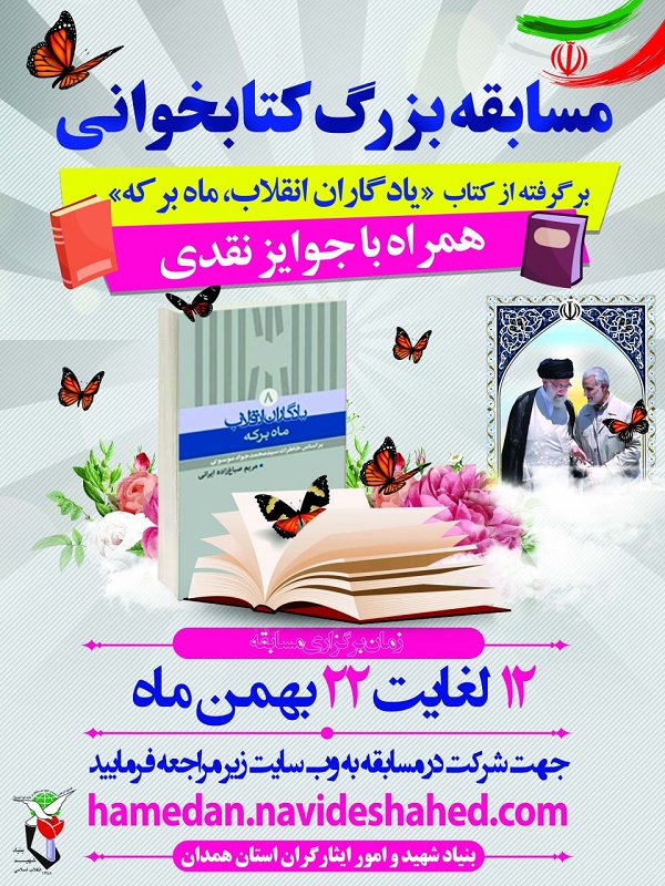 به گزارش نوید شاهد همدان، همزمان با فرارسیدن چهل و دومین سالگرد پیروزی انقلاب اسلامی، مسابقه کتابخوانی "ماه برکه" به همت بنیاد شهید و امور ایثارگران استان همدان برگزار میشود.