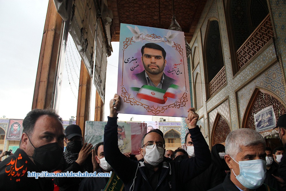 نوید شاهد - پیکر مطهر شهید "محسن جعفری" از شهدای مدافع امنیت امروز پنجشنبه 30 بهمن با حضور خانواده های معظم شهدا و ایثارگران، مردم و مسئولین از مقابل حرم مطهر حضرت شاهچراغ(ع) به سمت دارالرحمه شیراز تشییع و در گلزار مطهر شهدا به خاک سپرده شد. این شهید بزرگوار روز سه شنبه ۲۸ بهمن در درگیری با اشرار در منطقه شرق کشور به شهادت رسیده بود.