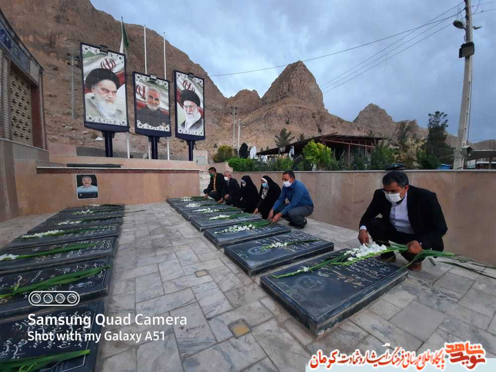 این مراسم با تجلیل از خانواده شهدا و غبارروبی، گلباران و عطر افشانی قبور شهدا همراه بود.