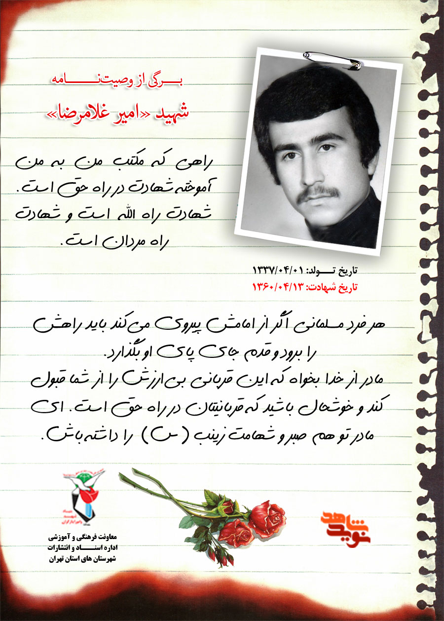 گزیدهای از وصیتنامه شهید «امیر غلامرضا» را در ادامه مرور میکنیم: