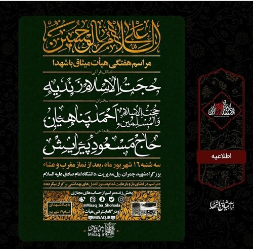 نوید شاهد- مراسم هفتگی هیئت میثاق با شهدا به یاد شهدای قیام 17 شهریور برگزار میشود.