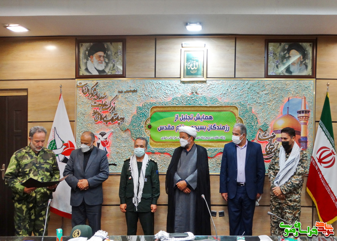 رزمندگان بسیجی دوران دفاع مقدس به نامهای «مهدی طوریان» از اداره کل استان، «محمود مزروعی سبدانی» از بنیاد نیشابور، «محمد رضا عباسیان» از بنیاد منطقه یک مشهد و «امین دلسوز» از بنیاد گناباد در این مراسم مورد تجلیل قرار گرفتند.